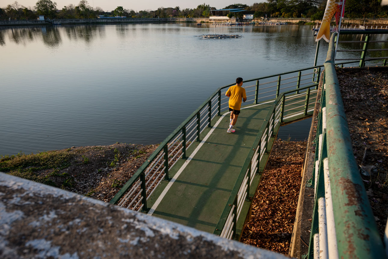 การออกกำลังกายในจังหวะที่ผ่อนคลายอีกแบบหนึ่งรออยู่ที่จังหวัดสิงห์บุรี เมืองเล็กที่มีบรรยากาศสงบและมีแม่น้ำเจ้าพระยาไหลผ่าน พื้นที่สวนสาธารณะและสันเขื่อนริมแม่น้ำของเมืองกลายเป็นเส้นทางวิ่งยอดนิยมของคนในพื้นที่ โดยเฉพาะในช่วงเย็นเมื่อพระอาทิตย์ค่อยๆลับขอบฟ้า แสงสีทองสะท้อนผิวน้ำสร้างบรรยากาศที่ทั้งเงียบสงบและโปร่งโล่ง การวิ่งในช่วงเวลานี้ทำให้ร่างกายค่อยๆ ปล่อยความตึงเครียดจากวันทำงาน เมื่อร่างกายได้ขยับ กล้ามเนื้อได้ทำงาน และจิตใจได้สัมผัสกับธรรมชาติ